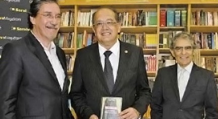 Merval, com Gilmar Mendes e Ayres de Britto, no lançamento do livro